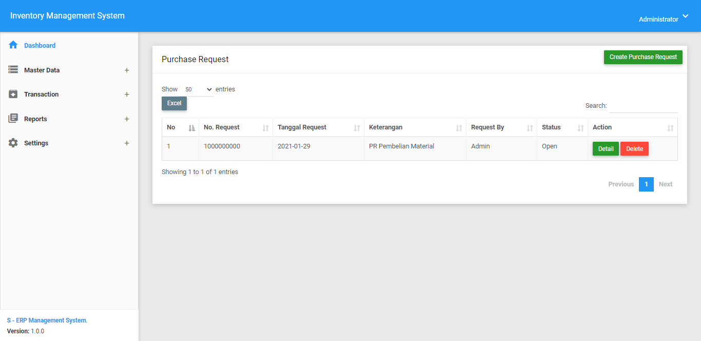 Setelah penerimaan PO berhasil, maka akan menambah stock inventory atas material yang ada di PO yang sudah diterima